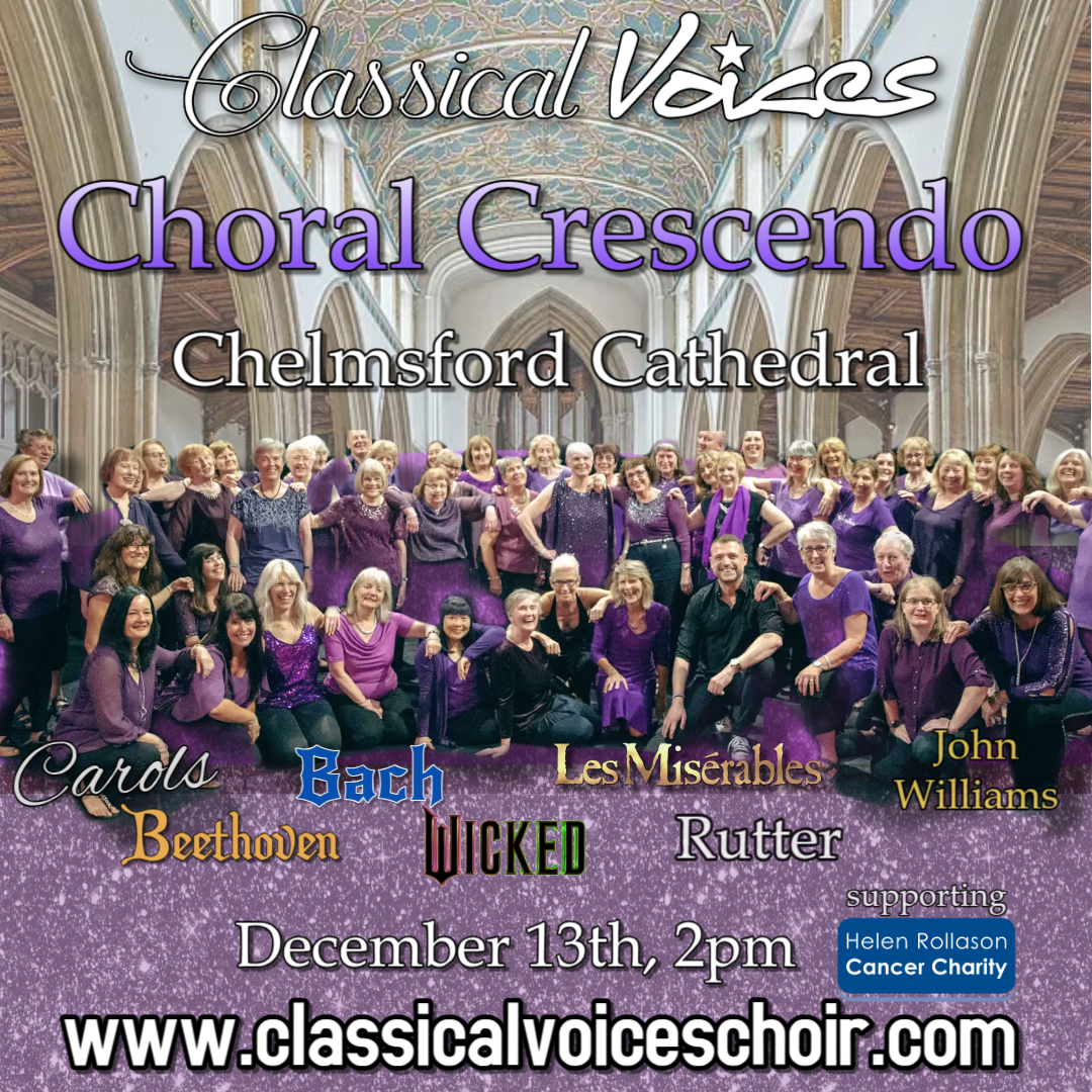 Classical Voices is a 90 strong traditional secular choir based in Essex UK. Founded and launched in 2017 by Musical Director, Sandra Colston, classically trained and full of inspiring energy with an infectious approach to teaching vocal ensembles. Performing a repertoire of exhilarating varied choral works, rehearsing once a month, they have a passion for rich, emotive harmonies and receive standing ovations at their sell out concerts. They continue to grow musically with stylistic conviction and a devotion to create sensational sounds.
